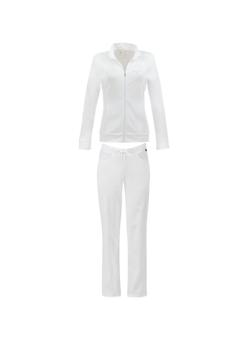 Vrijetijdspak met Swarovski®-kristallen<br /> <br /> Dit vrijetijdspak met lange mouwen is fraai afgewerkt met glinsterende Swarovski®-kristallen. Het bestaat uit een comfortabel jasje met lange mouwen van elastische fijne rib en een lange broek van DELUXE-single jersey. Het perfecte vrijetijdspak met lange mouwen voor dames voor ontspannen uurtjes en in een edel design.<br /> <br /> Strijken: Ijzer te heet<br /> Boord type: Staande kraag<br /> Materiaal naam: Katoen / synthetische vezels<br /> Samenstelling materiaal: 95 % katoen, ringgaren supergekamd, 5 % elastan<br /> Coupe: Figuuraccentuerende snit<br /> Drogen: Drogen niet mogelijk<br /> Wassen: Wassen in de machine 40°<br /> Ärmeltyp: Lange mouwen